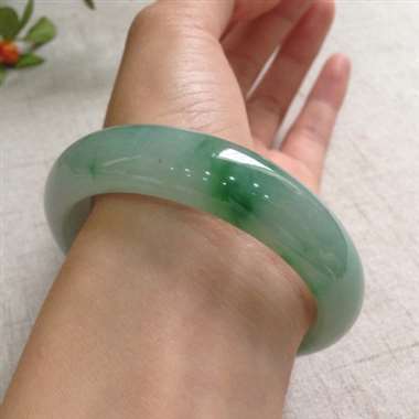 17041529#圆条尺寸:57.3x10.2x10.6mm 冰润翠色镯,圈口大,种色好,翠,满一圈